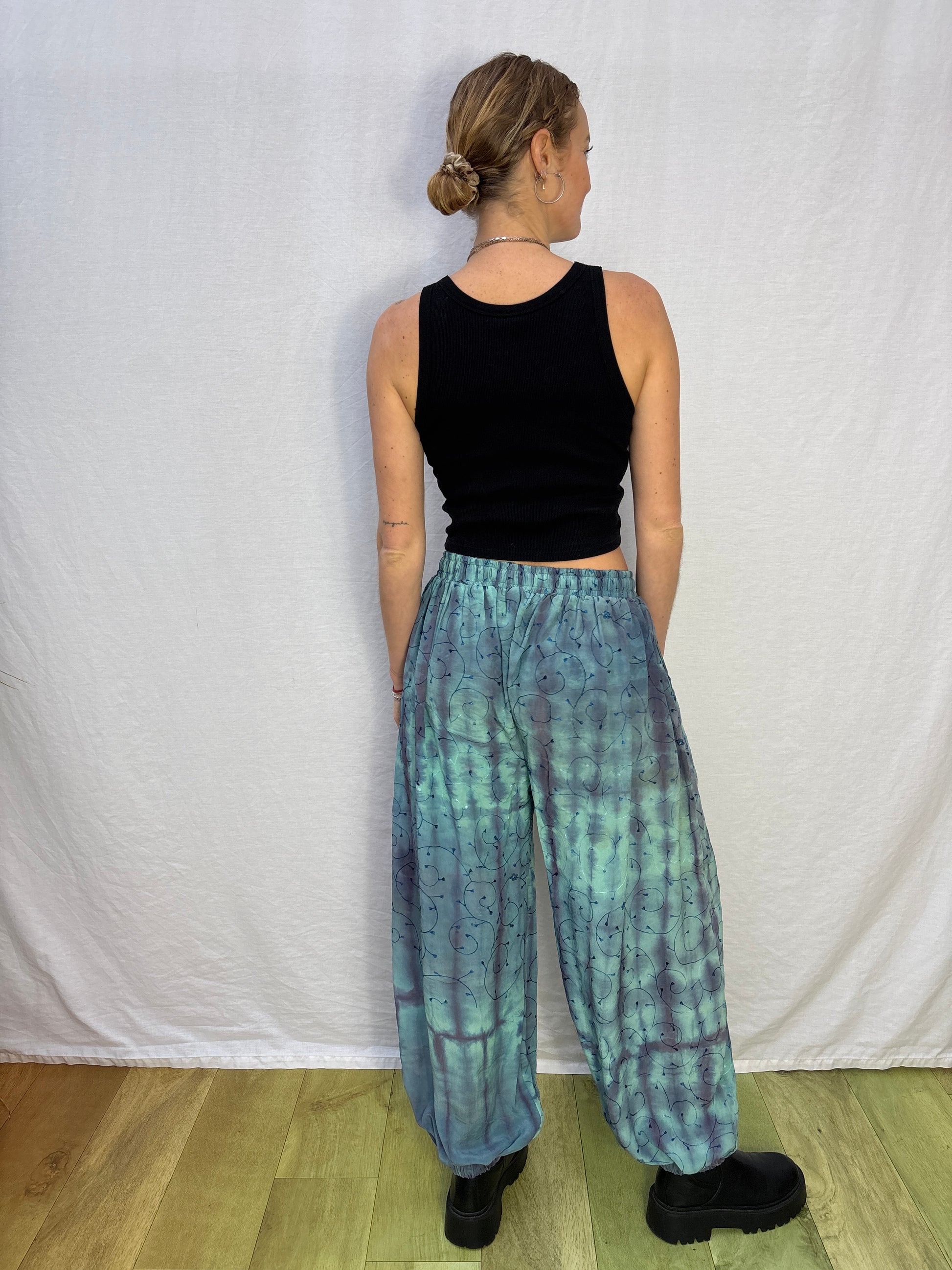 These balloon trousers are a take on our classic silk trousers with the addition of elasticated cuffed hem. Designed to be worn both with boots, and barefoot.