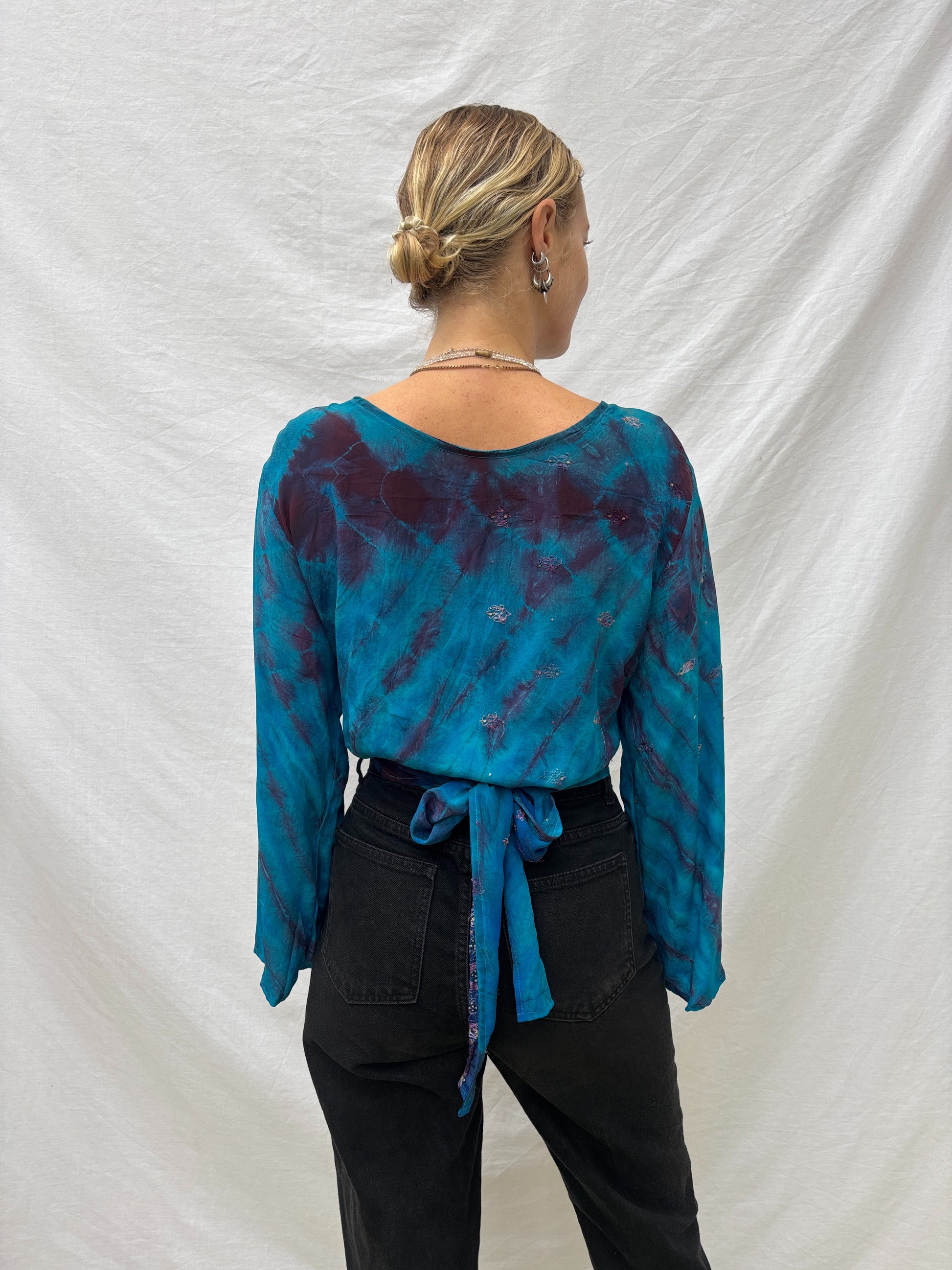 Handmade & upcycled in India from 100% silk sari to create this one of a kind top.