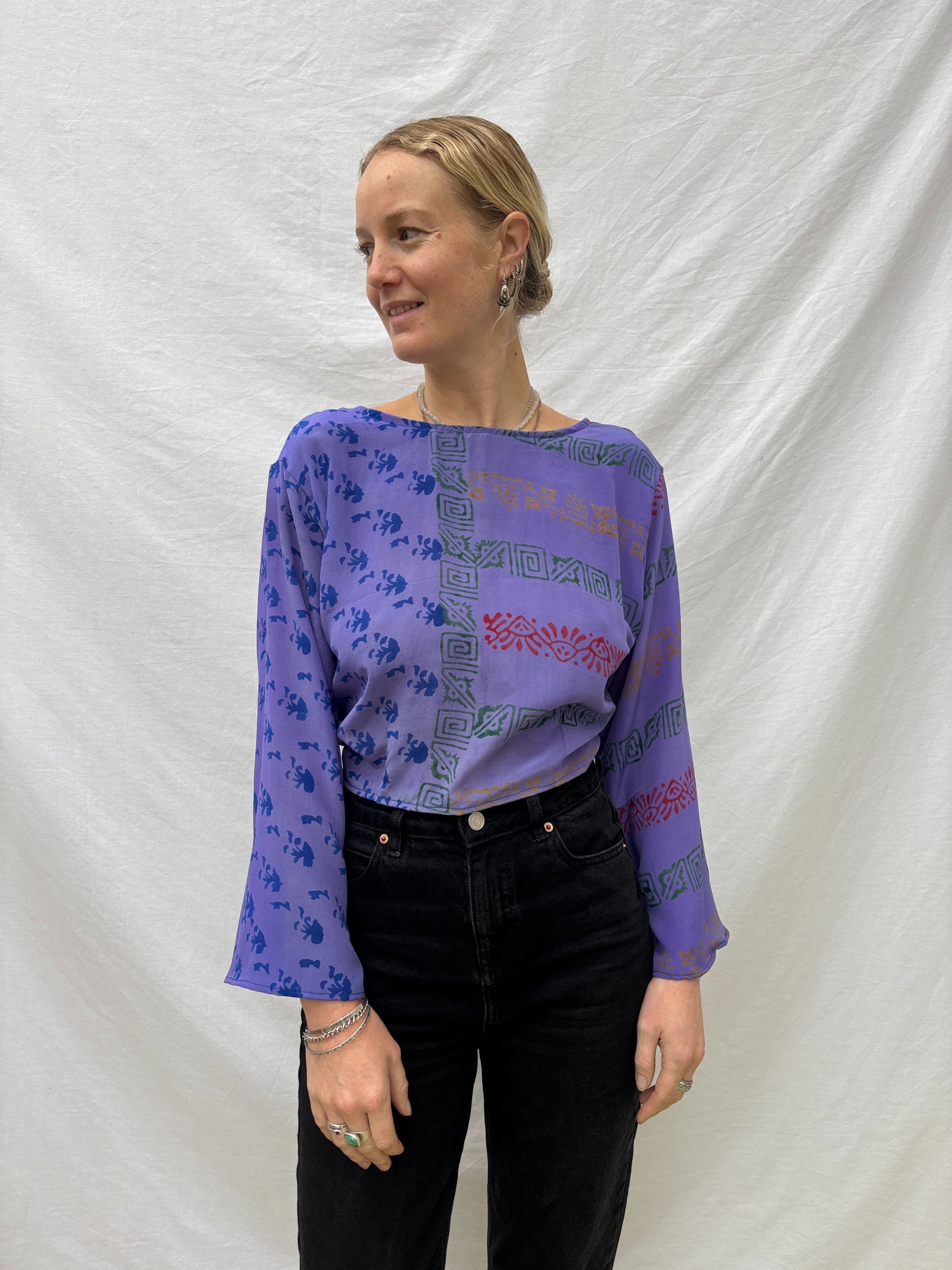 Handmade & upcycled in India from 100% silk sari to create this one of a kind top.