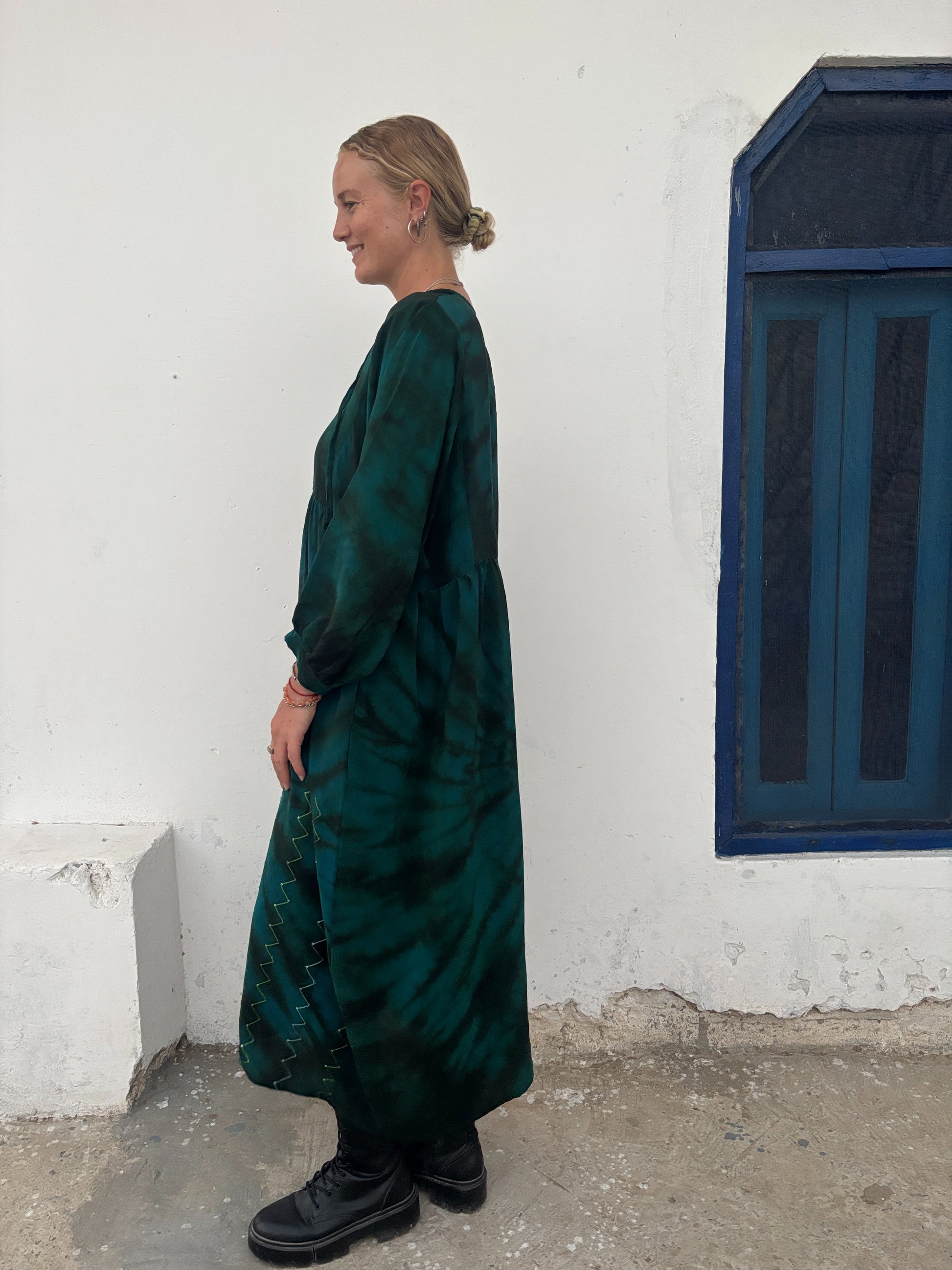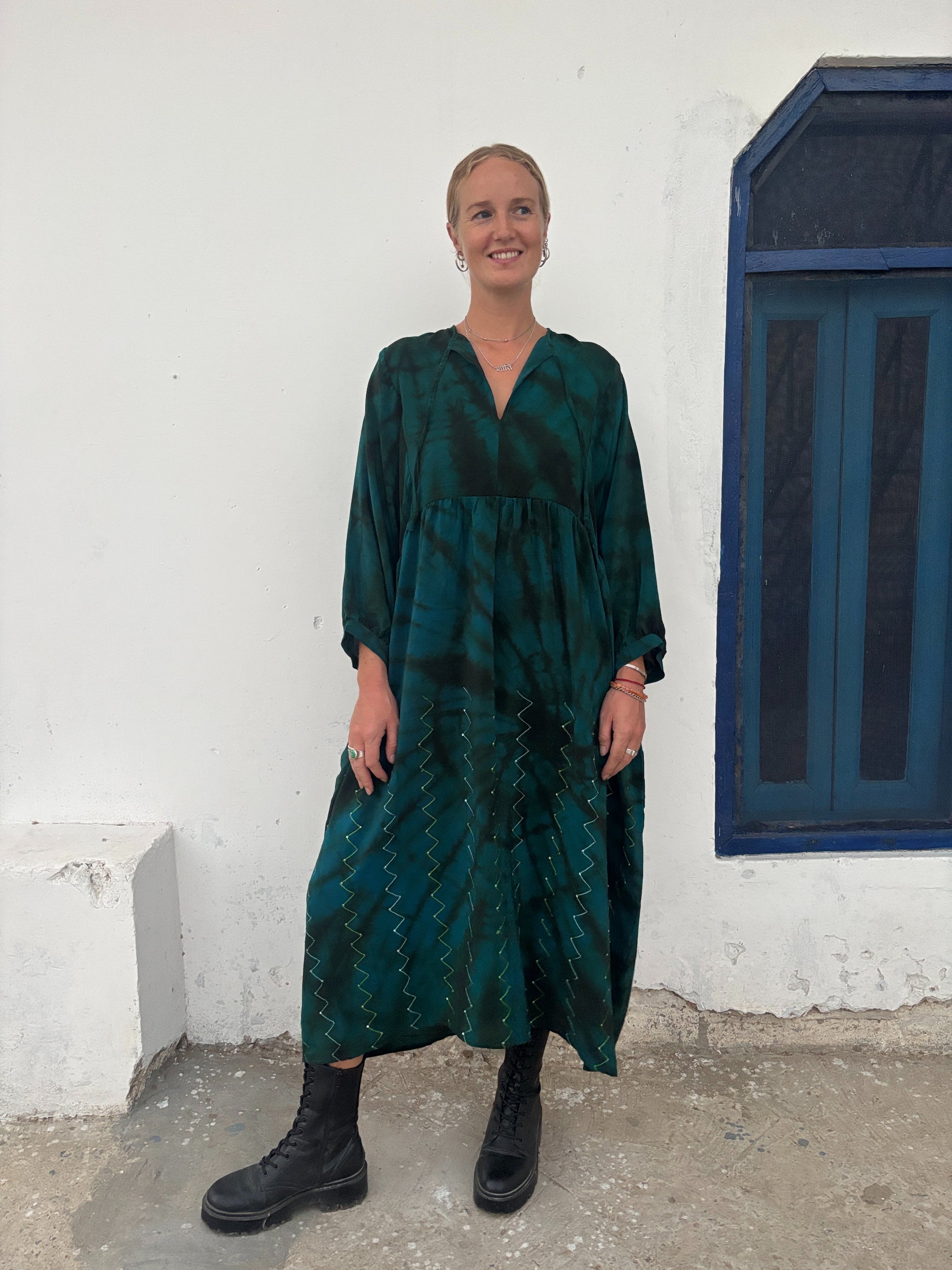 This playful & loose long dress is perfect for everyday wear with its long billowy sleeves and comfortable fit.