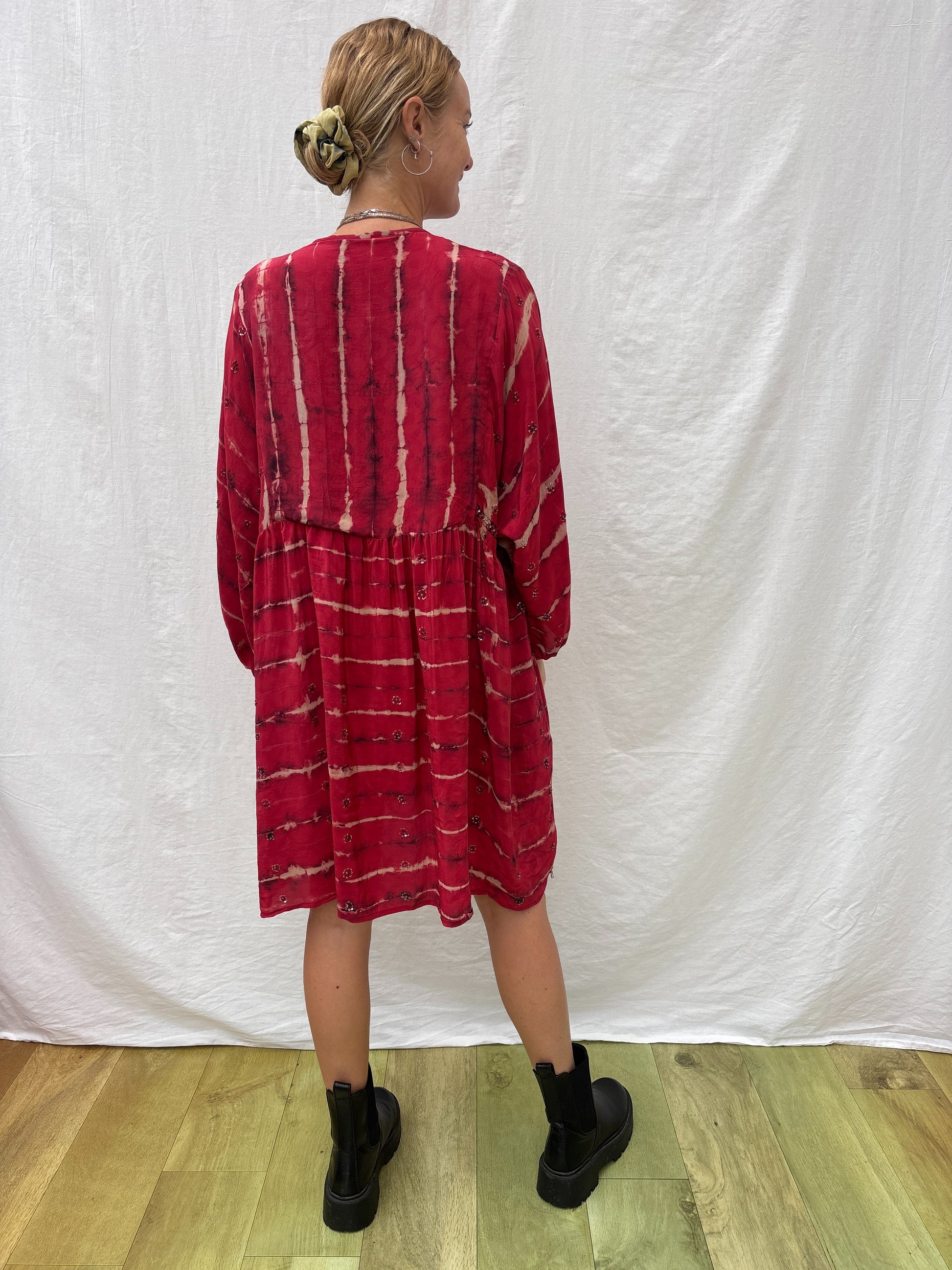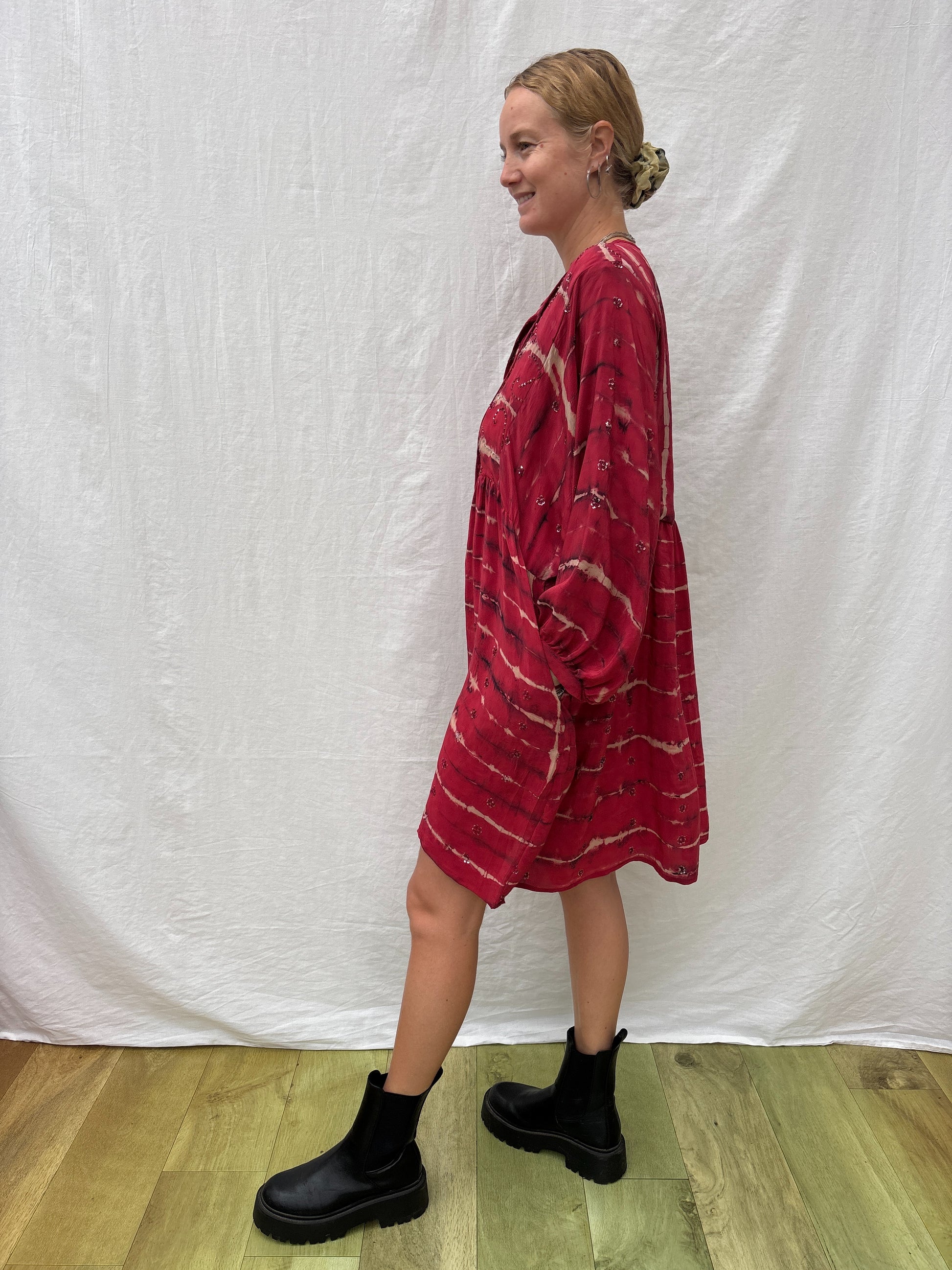 This playful & loose dress is perfect for everyday wear with its long billowy sleeves and comfortable fit.