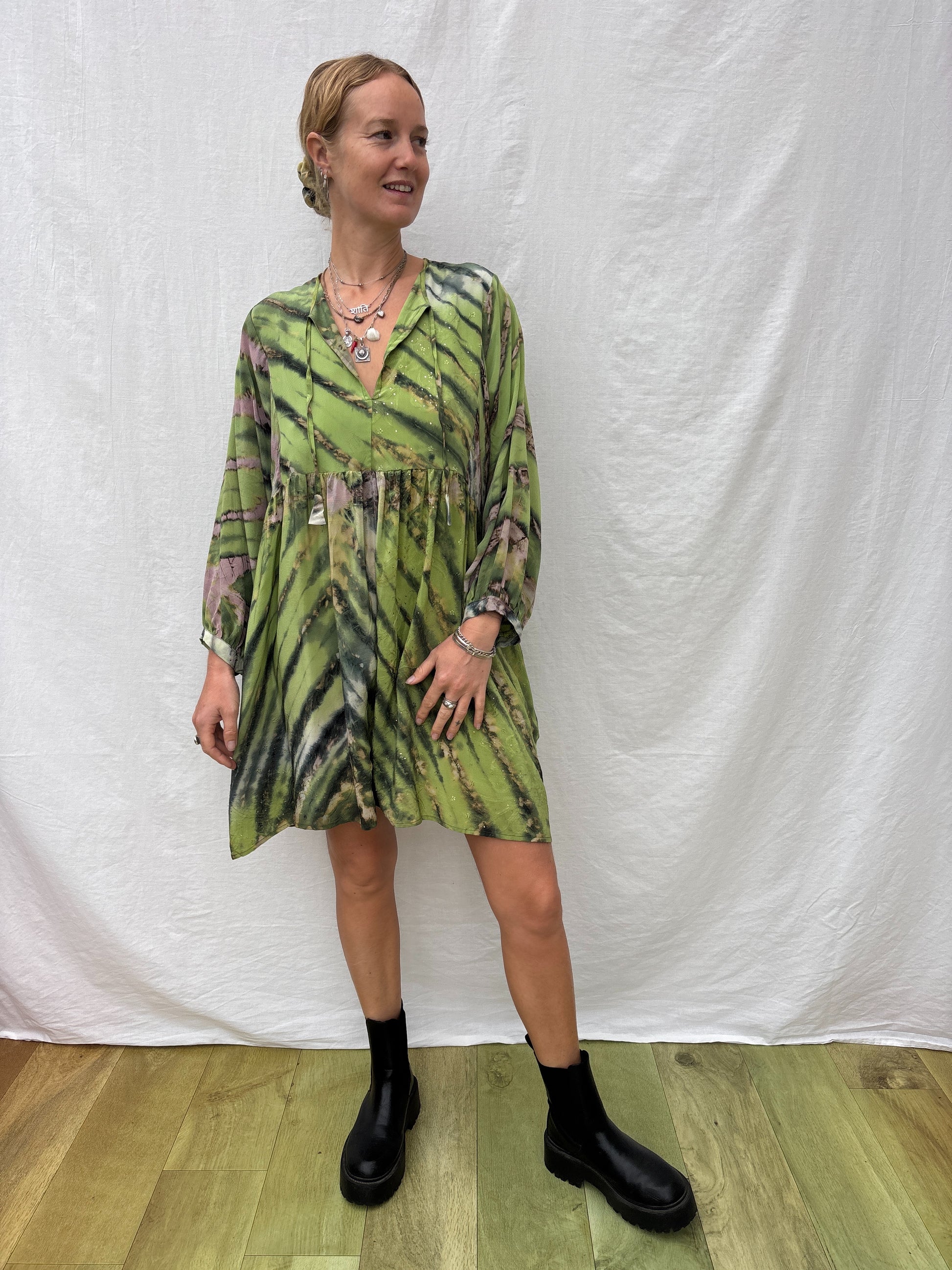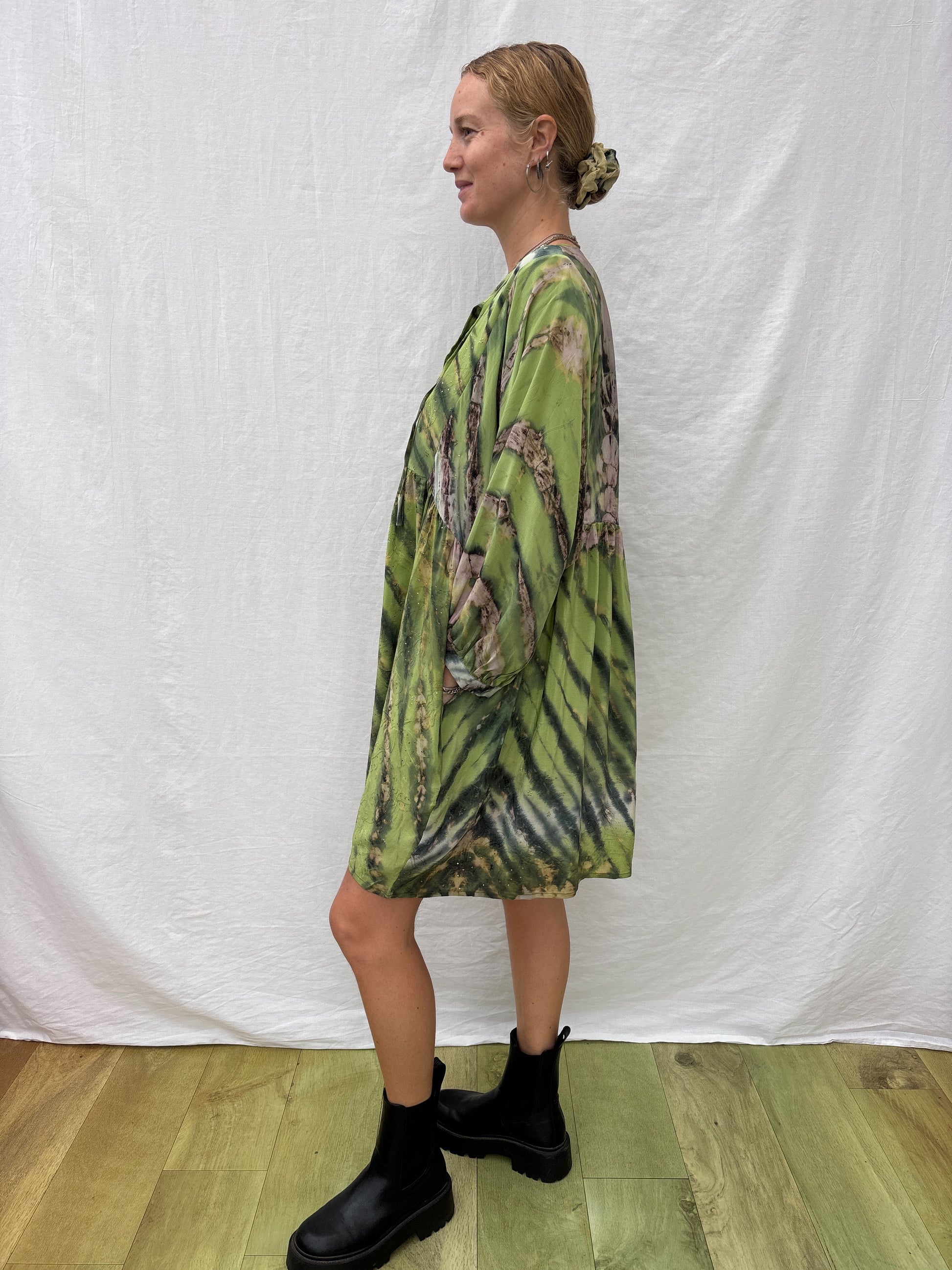 This playful & loose dress is perfect for everyday wear with its long billowy sleeves and comfortable fit.