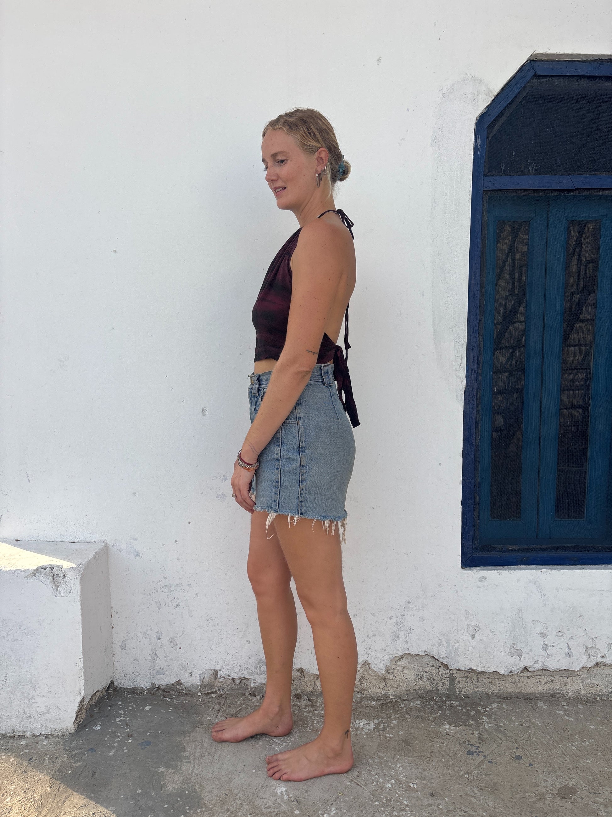 Made to show off sun kissed shoulders and sexy backs, this silk halter neck top is a little summer must have. Cropped length with wrap around back tie, plus an adjustable ruched neck that ties up to suit you.