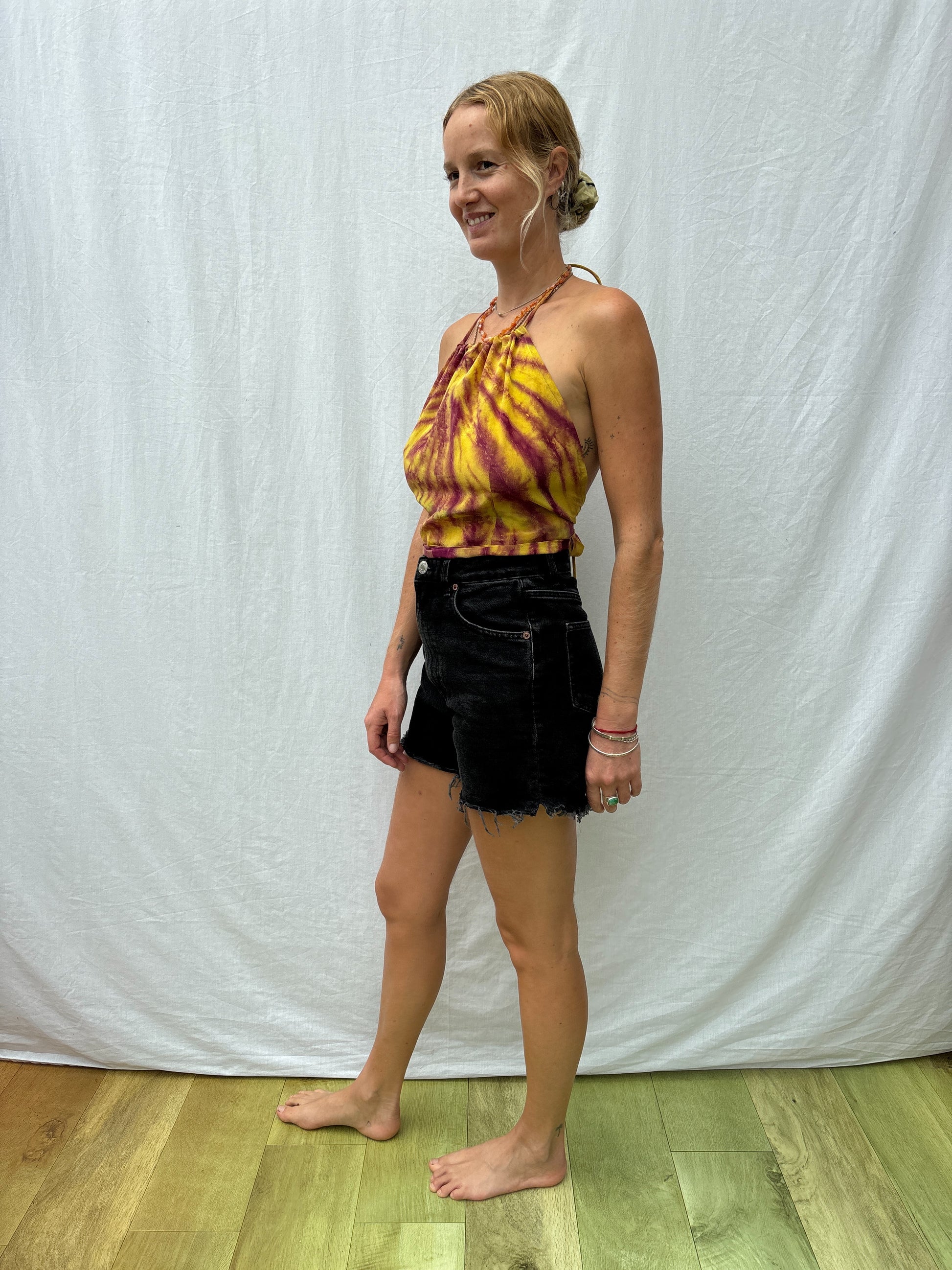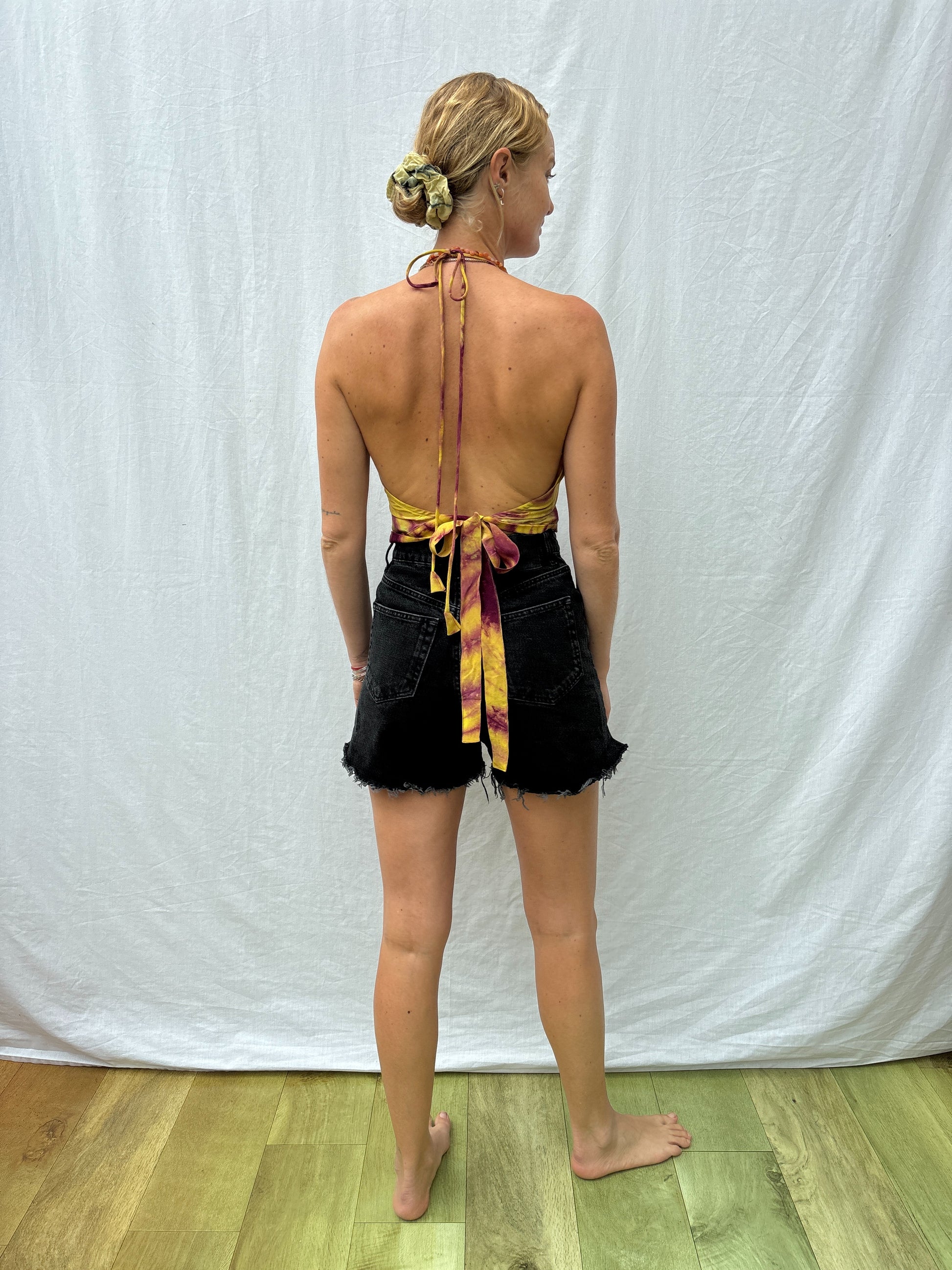 Made to show off sun kissed shoulders and sexy backs, this silk halter neck top is a little summer must have. Cropped length with wrap around back tie, plus an adjustable ruched neck that ties up to suit you.