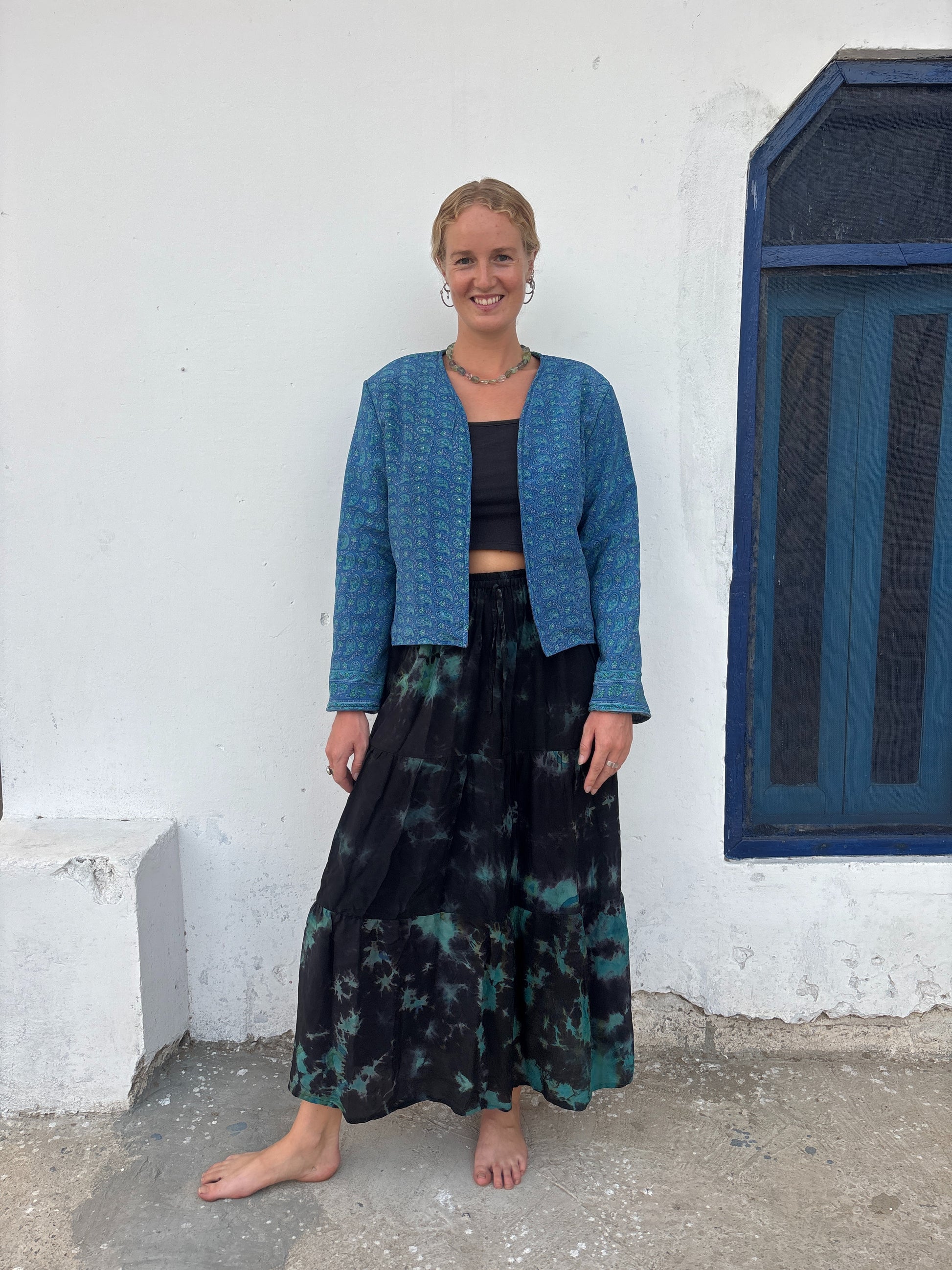 This reversible silk padded jacket is a fun & luxurious layer for everyday or dressing up. The quilting gives it gorgeous structure and it's the perfect fit to wear with jeans or dresses.