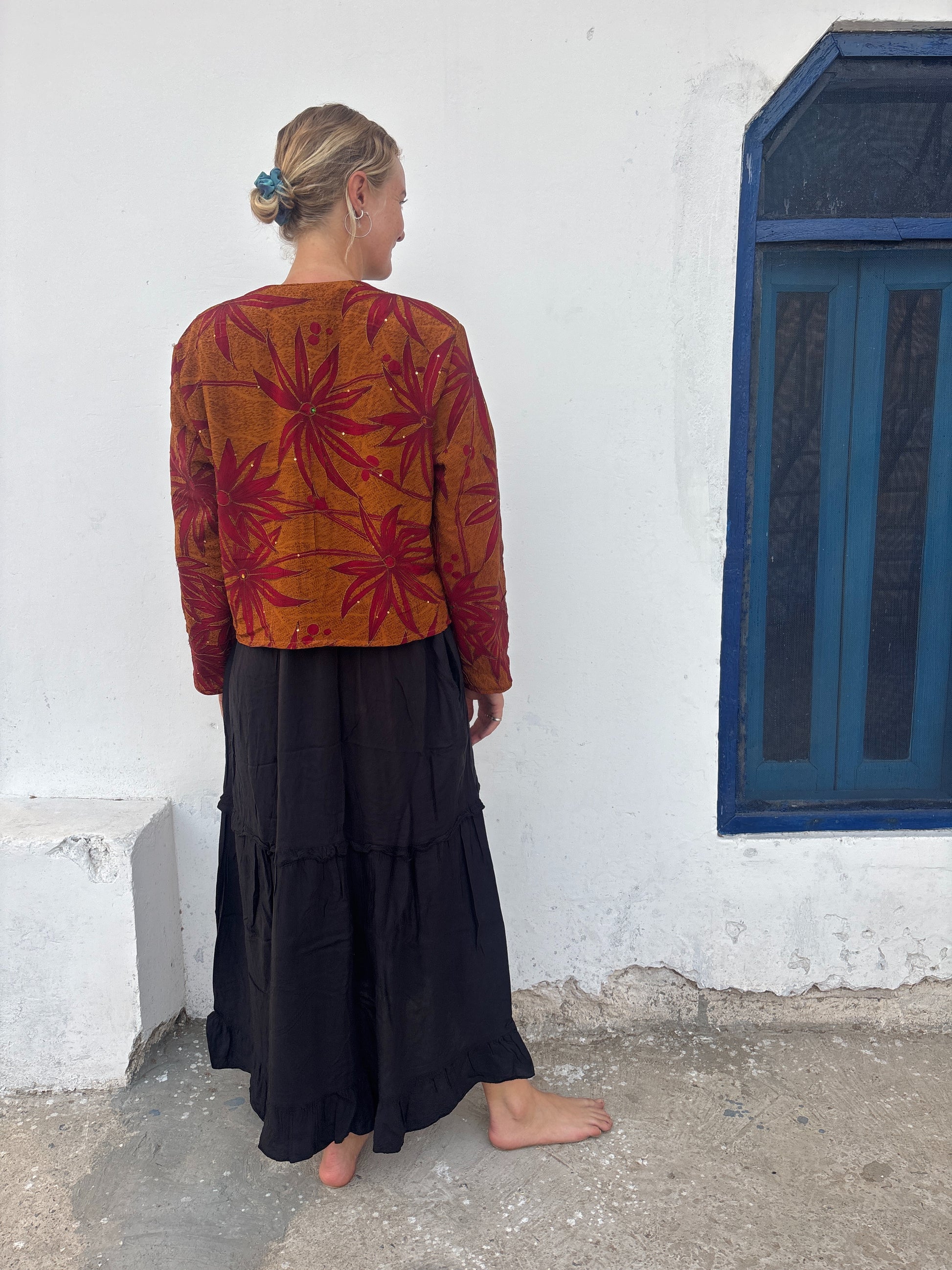 This reversible silk padded jacket is a fun & luxurious layer for everyday or dressing up. The quilting gives it gorgeous structure and it's the perfect fit to wear with jeans or dresses.