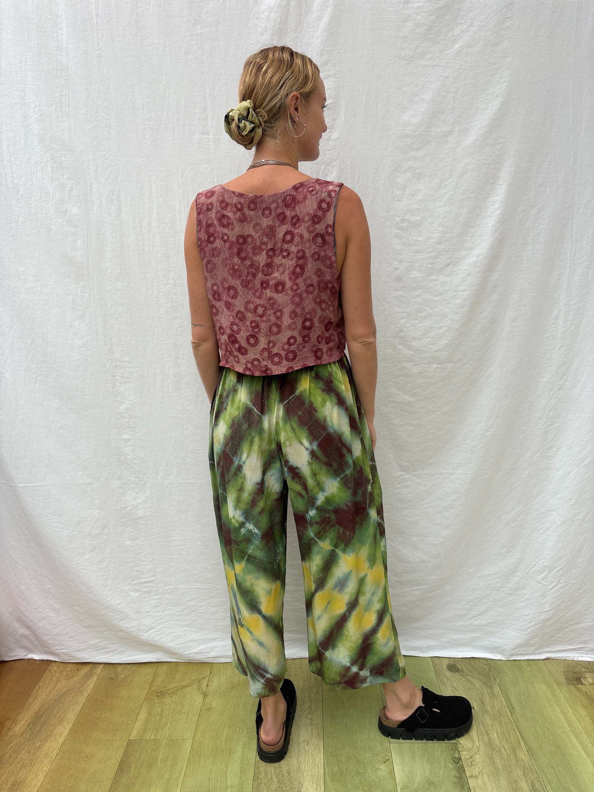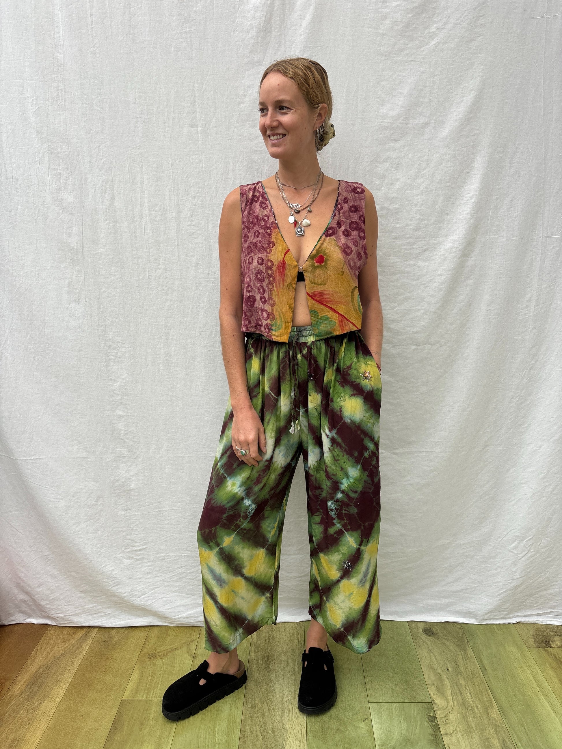 Double the fun with this reversible silk waistcoat vest top. Feminine fit with a deep V neckline, perfect for layering or wear it sexy style, just clasped at the bust.