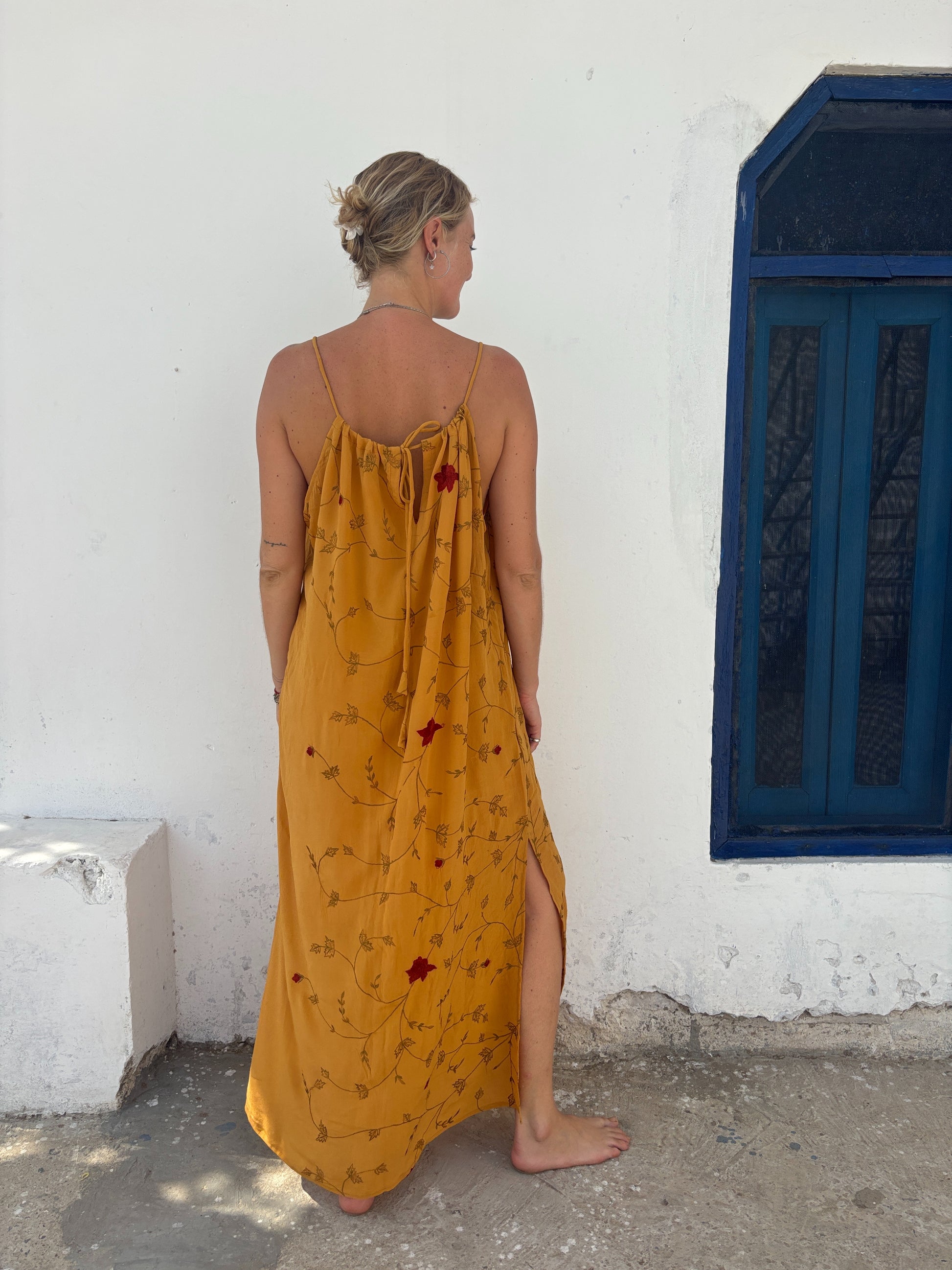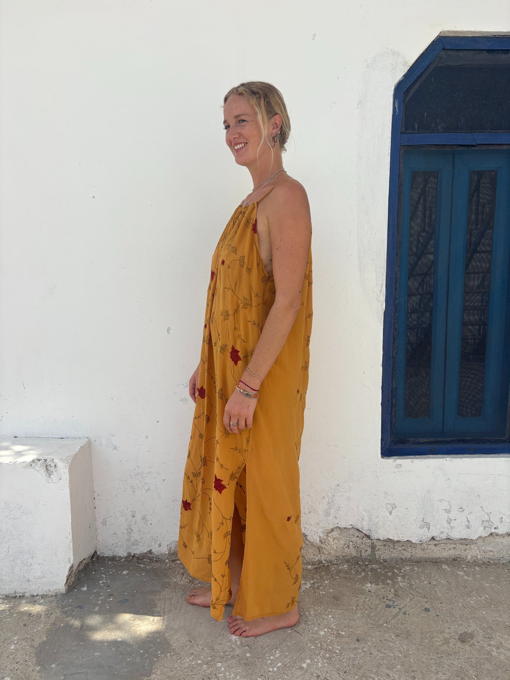 This maxi sun dress is the perfect holiday or sunny day dress. Adjustable straps mean you can choose the length and neckline, whilst the boxy shape & side split keeps it cool and airy.