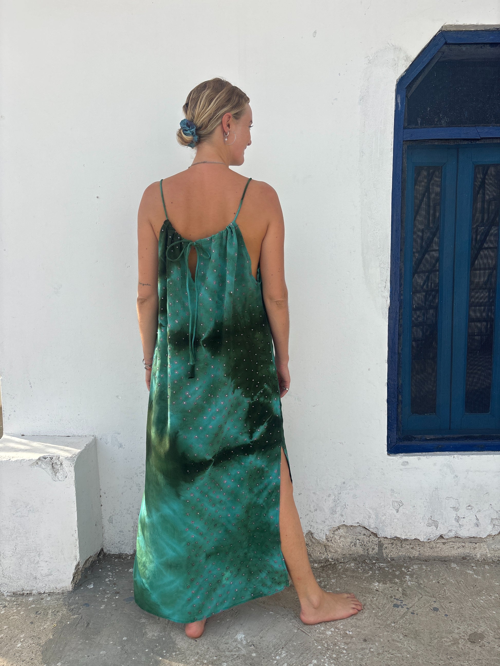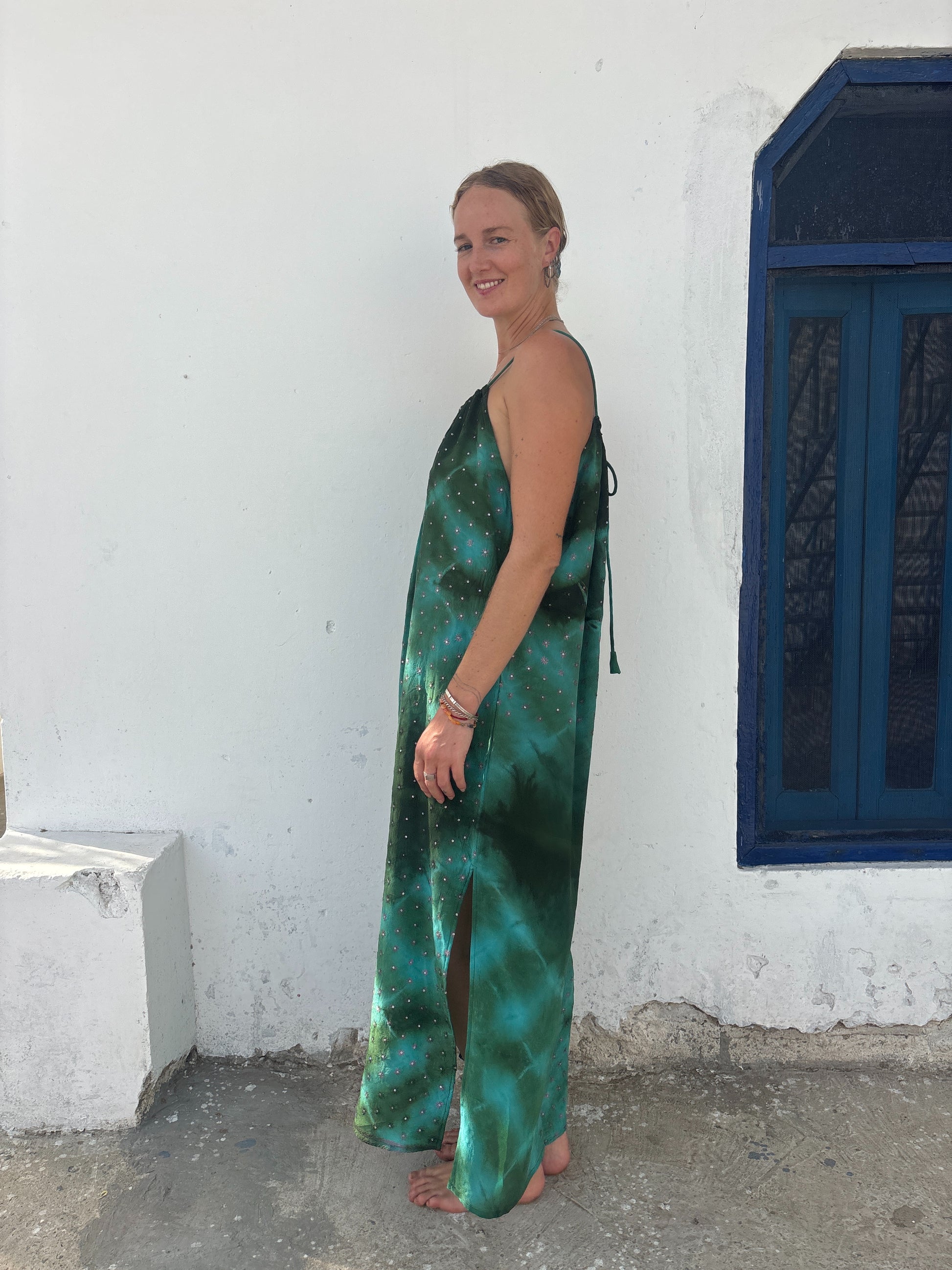 This maxi sun dress is the perfect holiday or sunny day dress. Adjustable straps mean you can choose the length and neckline, whilst the boxy shape & side split keeps it cool and airy.