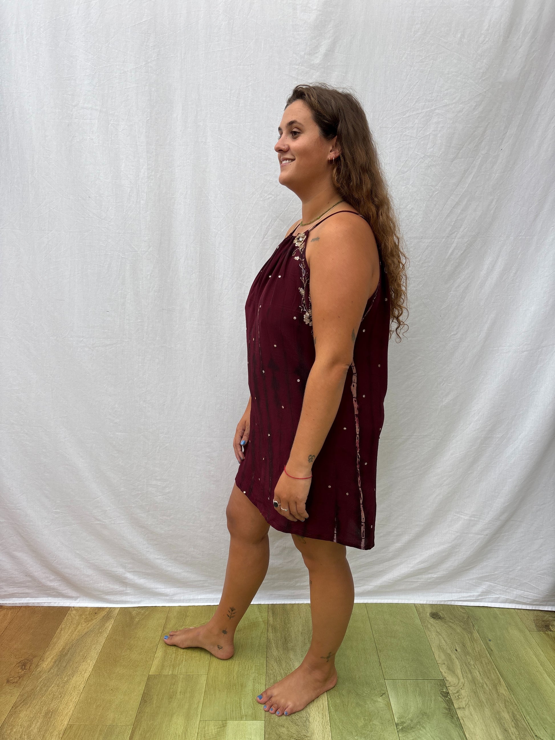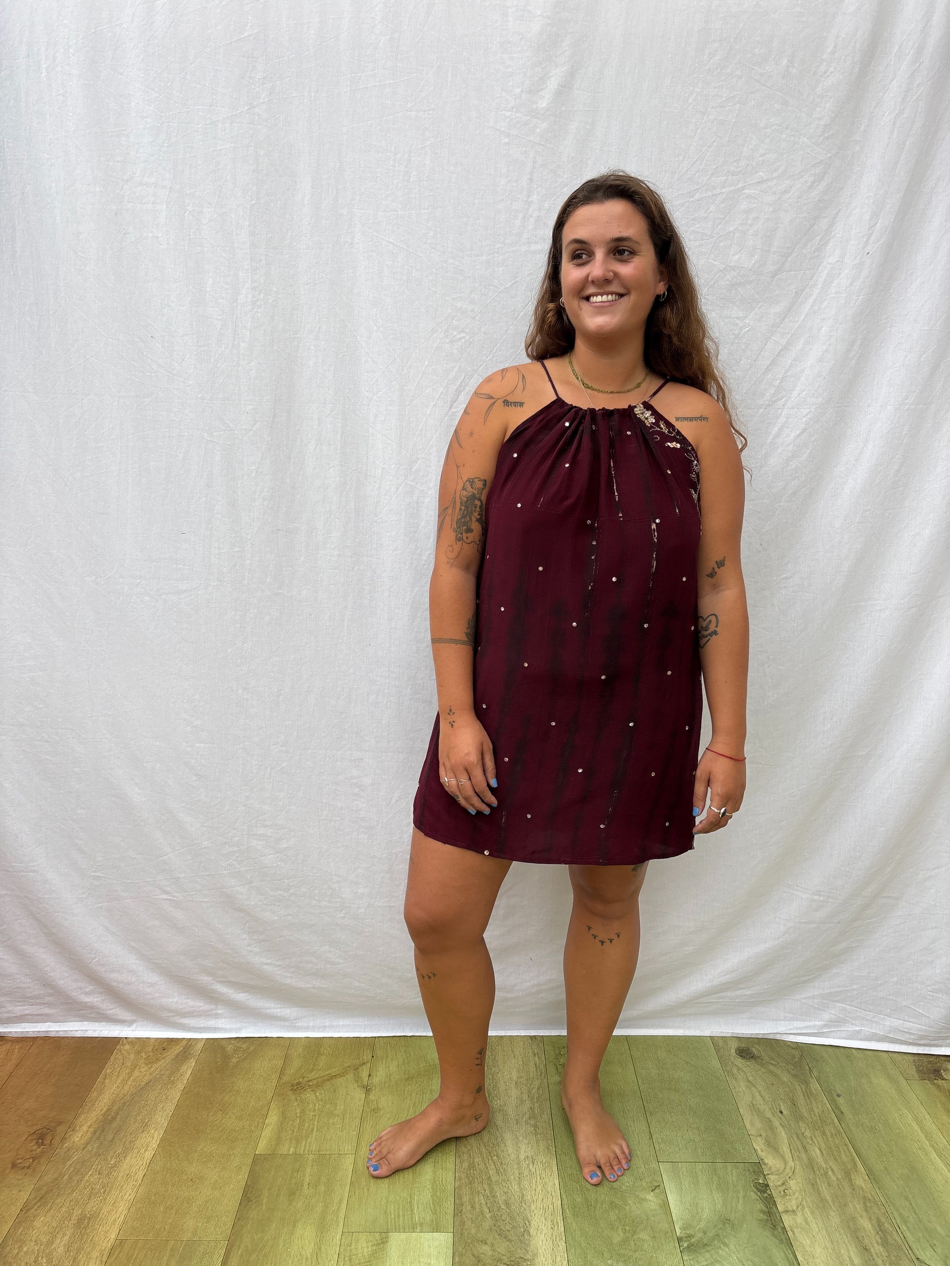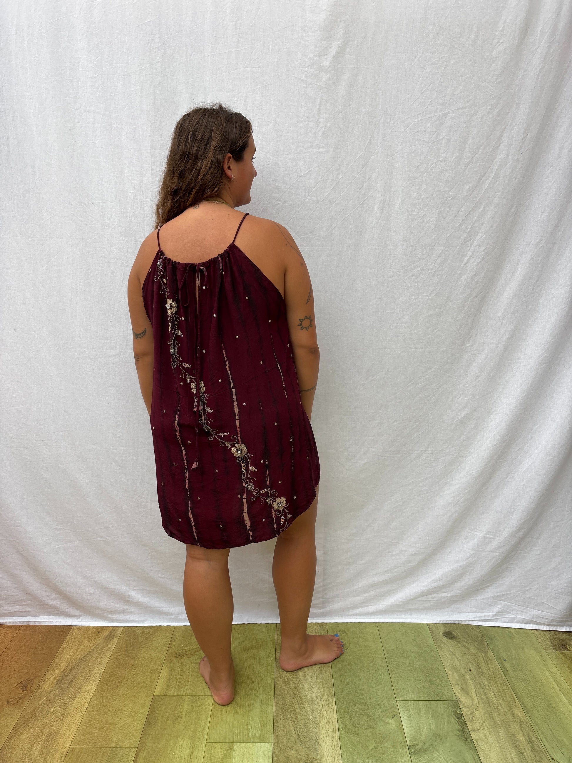 This mini sun dress is the perfect holiday dress. Adjustable straps mean you can choose the length and neckline, whilst the boxy shape keeps it cool and airy.